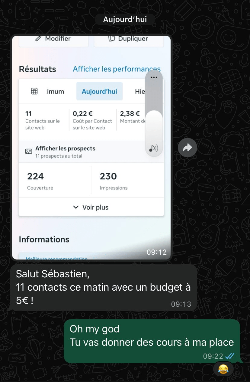 Il relance la pub à 16h…Et déjà 2 rendez-vous posés pour le lendemain.